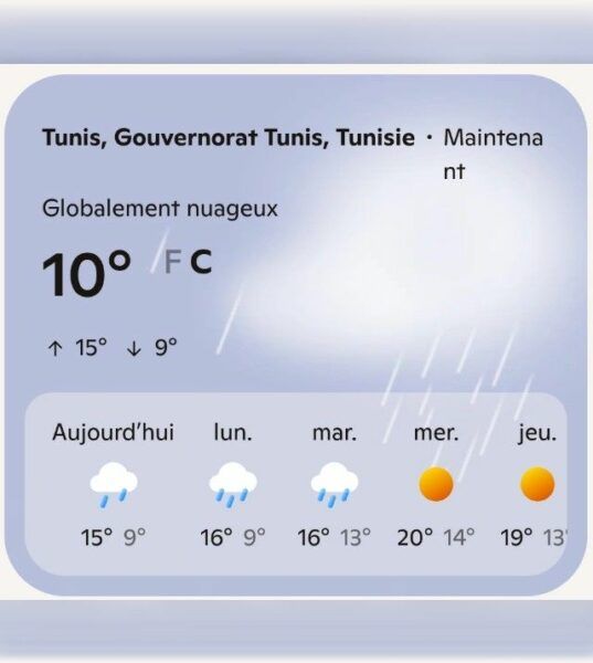 Tunisie : Prévisions météo du 9 février 2026